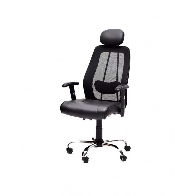 Assise L 50 x P 45 cm, réglable de 48 à 55 cm – Dossier H 75 cm réglable en angle d’inclinaison – Assise en simili-cuir et dossier en tissu maillé
