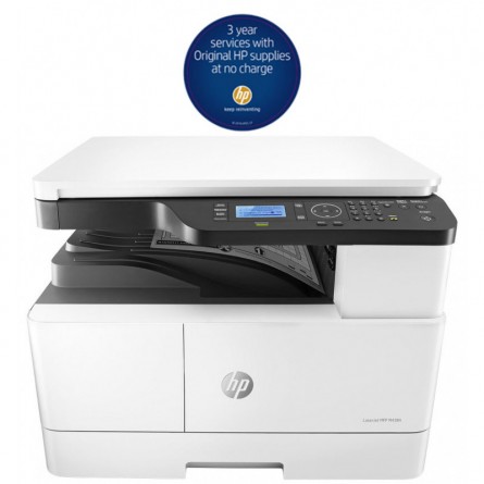Imprimante Multifonction Laser 3 en 1 HP LaserJet MFP M438n - Vitesse d'impression en noir (ISO, A4) : Jusqu'à 22 ppm - Format A3 - Technologie d'impression Laser - Fonctions: Impression, copie et numérisation - Résolution de numérisation: Jusqu'à 600 ppi - Résolution d'impression noir et blanc maxi 1200 x 1200 dpi - Taille de la mémoire 512 Mo - Capacité papier 100 feuilles - Capacité maximale en sortie (feuilles) : Jusqu'à 250 feuilles - Connexions : USB 2.0, Gigabit Ethernet - 1 cartouche de toner LaserJet préinstallée (noir) - Dimensions 560 x 540 x 417 mm - Poids : 25 kg - Garantie 1 an