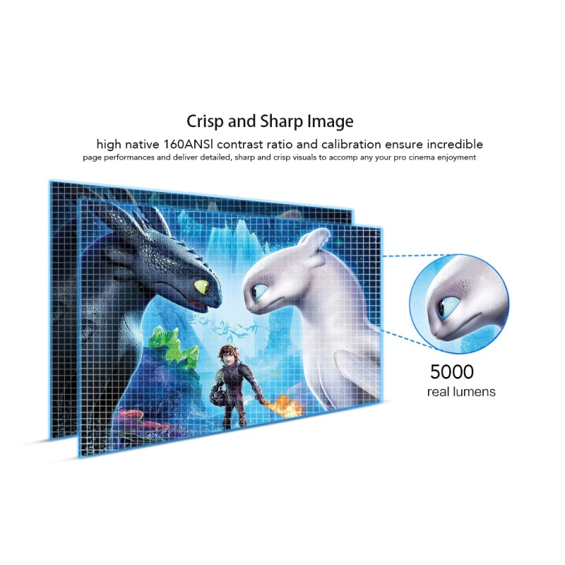 Vidéoprojecteur Volto Sun 600 Full HD 1080p - Connexion filaire USB - Écran LCD 4.3" - Luminosité 5000 lumens /160 ANSI - Résolution FULL HD, 1920 x 1080 - Distance de projection 3ft-15ft / 1-4M - Contraste 5000:1 - Taille de l'image 25 pouces - 300 pouces - Durée de vie prévue de la lampe >20 000 heures - Double haut-parleur stéréo intégré - AV - VGA - 2x HDMI - 2x USB - TF - Dimensions: 211 x 177 x 86 mm - Poids 1.25 kg - Couleur Noir - Garantie 1 an