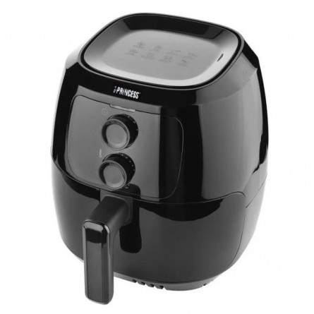 Friteuse Sans Huile PRINCESS - Puissance: 1500 watts - Capacité: 4.2 litres - Température Réglable: de 80°C jusqu'à 200°C - Minuterie réglable - Revêtement antiadhésif - Panneau de commande Analogique - Convection d'air à grande vitesse - Poigné froide au toucher - Pieds antidérapant - Couleur: Noir
