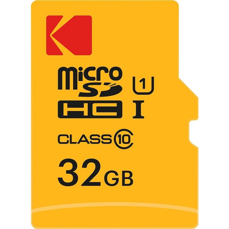 Marque: KODAK Modèle: KSD32GHBEU200 Type de carte mémoire flash: Micro SD Capacité de stockage: 32 Go Classe: 10 Standard: SDHC UHS-I Appareils compatibles: Universel Couleur: Noir/Jaune