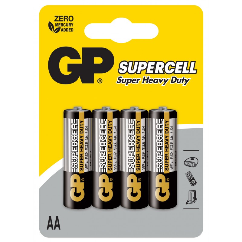 Pile GP R6 Super Heavy Duty, format AA, pack de 4 piles, tension de 1,5V. Idéale pour fournir une énergie durable aux appareils de bureau, aux lampes de poche, aux jouets et aux radios réveil.