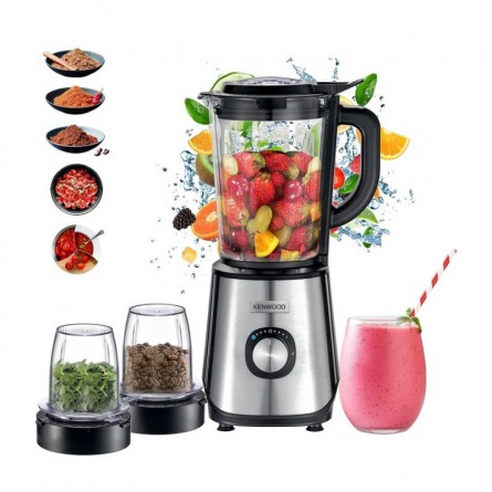 Blender KENWOOD - Capacité du Mélangeur : 2 litres - Nombre de vitesse : 2 vitesses - Puissance : 1000W - Lames en acier inoxydable - Interrupteur de verrouillage de sécurité - Pieds en caoutchouc antidérapants - Multi-broyeur conçu pour hacher efficacement les herbes et les pâtes - Fonction : glace pilée - Moulin à café en grains, noix et épices - Système de nettoyage facile - Couleur : Silver - Garantie : 1an