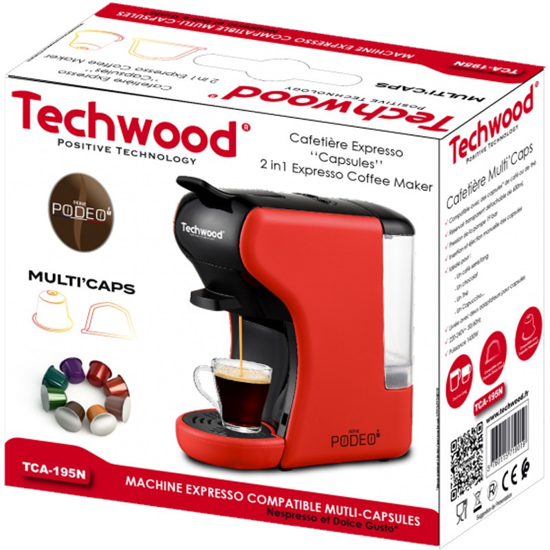 CAFETIERE EXPRESSO TECHWOOD TCA-195N MULTICAPSULES ROUGE
