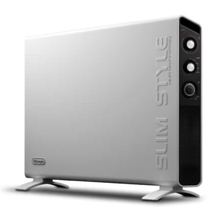 Convecteur Électrique DELONGHI - Puissance Réglable: 800 - 1200 - 2000 Watts - Système à double ventilateur - Thermostat d'ambiance: Mécanique - Chaleur rapide jusqu'à 60 m3 - Niveau de bruit: 46 dB(A) - Arrêt automatique en cas de basculement - Poignée de transport - Alimentation: 230 V / 50Hz - Dimensions: 820 x 75 x 550mm - Couleur: Blanc - Garantie: 1an