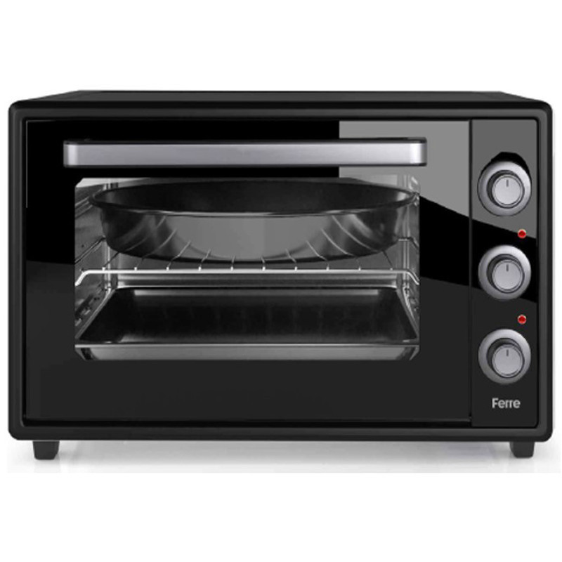 Four Électrique Saba 60500-L - Volume : 60 Litres - Puissance : 2000 W - Minuterie : 90min - Thermostat - Ventilateur turbo - Double verre - 1 Plateau carré + Un plateau rond + 1 grille - Cavité intérieur - Gauche/Droite/Inférieur/Supérieur - Panneau émaillé - Élément chauffant en acier inoxydable - Couleur : Noir - Garantie : 1 an