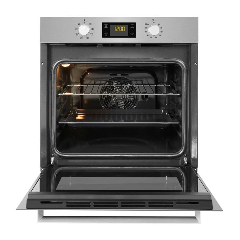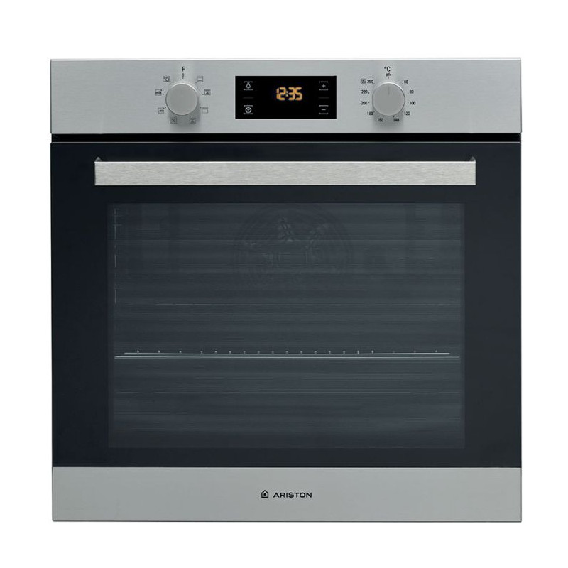 Four Électrique ARISTON - Volume: 66 Litres - Puissance: 2900 Watts - Largeur: 60 cm - Classe Énergétique: A - Consommation d'énergie conventionnelle: 0,99kWh - Consommation d'énergie convection forcée: 0,79kWh - 8 programmes - Minuterie électronique - Chaleur tournante - Matériau de la cavité: Émaillé - Dimensions: H x L x P: 59 x 59 x 57 cm - Couleur: Inox - Garantie: 3 ans