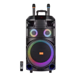 Modèle : ZQS12151 Type : Haut-parleur Bluetooth portable avec trolley Puissance de sortie : 80W Haut-parleur principal : Woofer de 12 pouces Canaux audio : 2.0 Matériau : Plastique Dimensions : 390 × 390 × 750 mm Poids brut (emballé) : 18 kg Alimentation : Batterie rechargeable (détails non spécifiés) Connectivité : Bluetooth 5.0 USB AUX Carte mémoire (TF) Entrée micro Microphone sans fil Télécommande Câble de charge USB