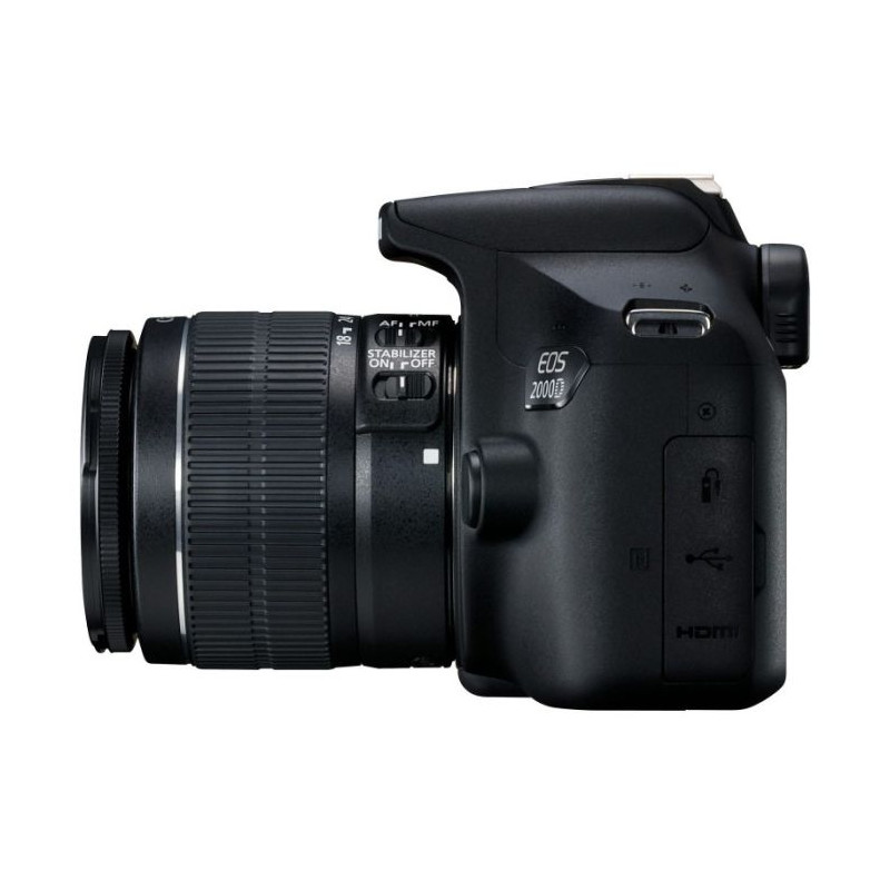 Produit : Appareil Photo Reflex CANON EOS 2000D – Écran : 3" LCD Tactile – Capteur d'image : CMOS APS-C 22,3 mm × 14,9 mm – Résolution du capteur : 24,1 mégapixels – Vidéo : Full HD 1920 × 1080 px – Processeur d'image : DIGIC 4+ – Objectif : 18-55 mm – Support carte mémoire : SD, SDHC, SDXC – Batterie : Lithium-ion rechargeable LP-E10 – Connectivité : USB, Sortie Mini HDMI (type C), Wi-Fi, NFC – Dimensions : 129 × 101,3 × 77,6 mm – Poids : 475 g – Appareil idéal pour les amateurs et passionnés de photographie souhaitant capturer des images nettes et détaillées.