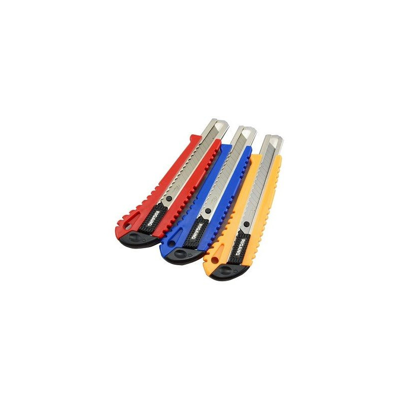 Cutter PM RIGANG RG-347 - Lame: 9 mm - Cutter de précision idéal pour travaux de bureau, bricolage et papeterie - Lame rétractable et remplaçable pour plus de sécurité - Corps en plastique solide avec grip antidérapant - Mécanisme de blocage de la lame pour une coupe stable - Design compact et léger pour une utilisation facile - Marque: RIGANG.