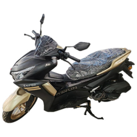 Scooteur DAYUN SNIPER 124CC — Marque : Dayun / Modèle : Sniper 124 cc / Cylindrée : 124 cc / Réservoir : environ 4,5 L / Consommation moyenne : ≈ 2,5 L / 100 km / Moteur : monocylindre, 4 temps / Système de refroidissement : à air / Frein avant : disque / Frein arrière : disque / Vitesse maximale annoncée : ≈ 90 km/h / Garantie : 6 mois ou 5000 km.