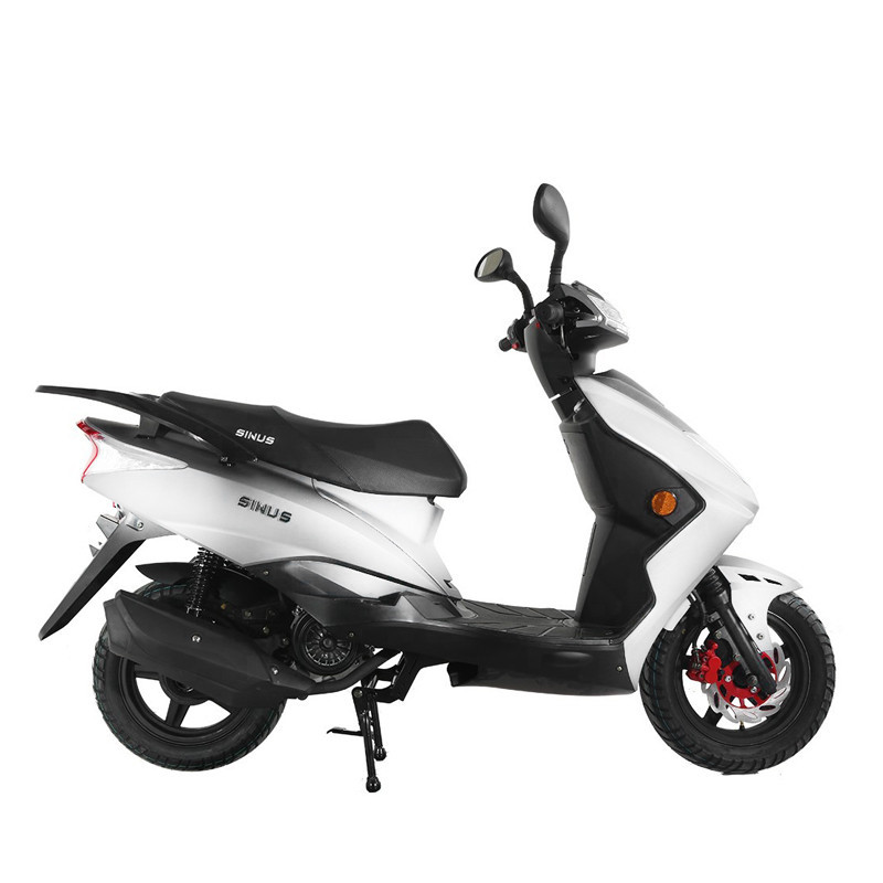Scooter Zimota Sinus Cylindrée : 124 cc Moteur : Monocylindre 4 temps Refroidissement : À air Capacité du réservoir : 6,2 litres Transmission : 4 vitesses Couple maximal : 4.0 Nm à 6500 tr/min Batterie : 12V – 7Ah Pneumatiques AV / AR : 120/70-12 / 120/70-12 Suspensions AV / AR : Fourche hydraulique / Amortisseur Freins AV / AR : Disque / Tambour Dimensions : 1900 x 685 x 1135 mm Poids : 112 kg Couleur : Blanc Garantie : 1500 km