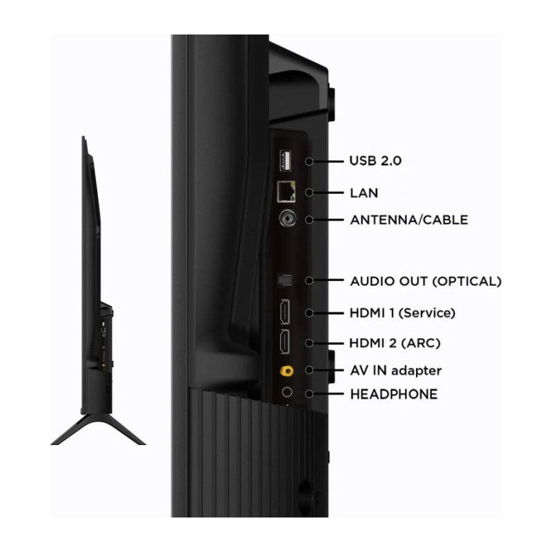 Tv iFFALCON by TCL 32" Smart S55 FHD 2K - Résolution: 1920×1080 pixels - Google TV - Format d’image: 16:9 - Taux de rafraîchissement: 60 Hz Full HD - Dolby Audio - HLG - HDR 10+ - Mode de visualisation multiple - Mode Jeux - Puissance sonore: 2x10W - Google Assistant, Google Cast, Profil Enfant - Connectivité: Wi-Fi, Bluetooth 5.0 - Connecteurs: 2 x HDMI | 1 x USB |1 x LAN | 1 x SORTIE AUDIO NUMÉRIQUE - Design métallique sans cadre - Garantie: 2 ans