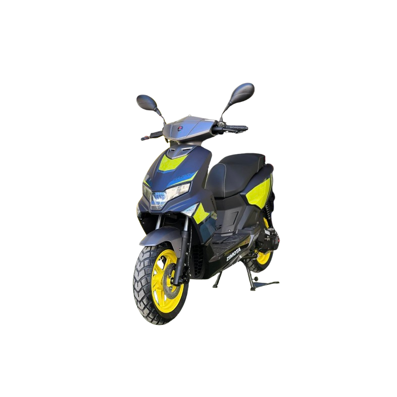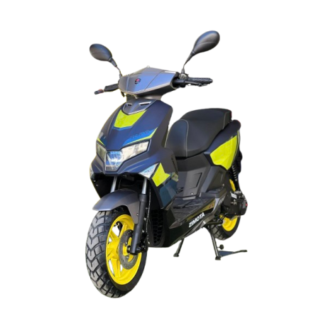 Le scooter ZIMOTA TAPO 49CC est un deux-roues pratique et économique, idéal pour les déplacements urbains quotidiens. Équipé d’un moteur monocylindre 2 temps, il offre une conduite fluide avec un couple maximal de 4.0 Nm à 6500 tr/min. Son système de refroidissement à air garantit une performance fiable lors de vos trajets. Côté sécurité, il dispose d’un frein à disque à l’avant et d’un frein à tambour à l’arrière pour un freinage efficace. Ce scooter est également doté de suspensions avant à fourche hydraulique (70 mm de débattement) et d’un amortisseur arrière (45 mm) assurant un bon confort de conduite. Avec un poids à sec de 87 kg et un réservoir de 5.5 litres,. Ses pneus 120/70-12 à l’avant et à l’arrière garantissent une bonne stabilité sur la route, tandis que sa batterie 12V 7Ah.