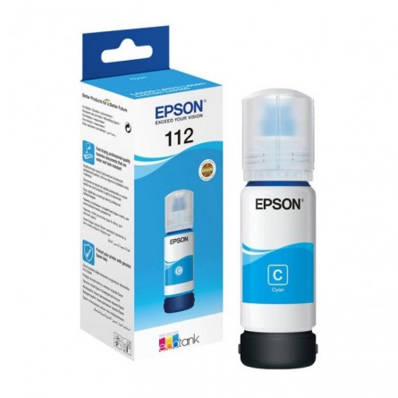 Bouteille D'encre Original EPSON EcoTank 112 - Technologie d'impression: Jet d'encre - Capacité: 70 ml - Nombre total de pages (Couleur): 6000 pages - Compatible avec: Epson EcoTank L11160, L15150, L15160, L6550, L6570, L6580, M15140 - Couleur: Cyan