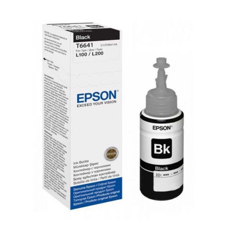 Bouteille D'encre Original EPSON T6641 - Capacité: 70 ml - Nombre total de pages (noir et blanc): 4000 pages - Compatible avec: Epson EcoTank ET-2650 ET-2500 ET-2550 ET-2600 ET-3600 ET-4500 ET-4550 ET-14000 L100 L110 L120 L130 L132 L200 L210 L220 L222 L300 L310 L312 L350 L355 L360 L362 L365 L366 L382 L386 L455 L456 L486 L550 L555 L565 L655 L1300 - Couleur: Noir