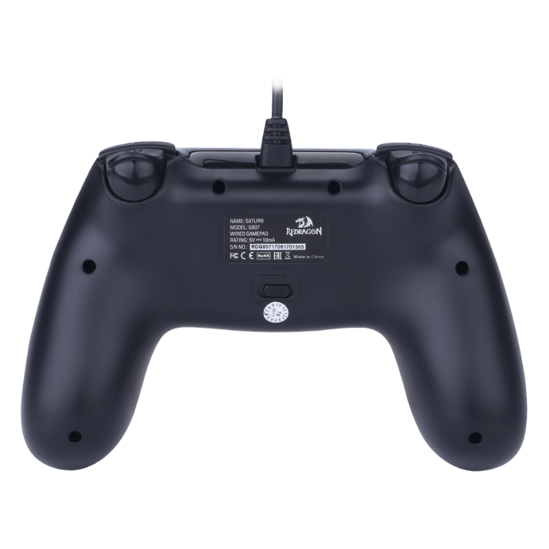 La manette REDRAGON SATURN G807 dispose d'une connectivité filaire USB, ce qui garantit une transmission rapide et stable des commandes de jeu. Elle est compatible avec les consoles de jeux PlayStation 4 et Nintendo Switch, ainsi qu'avec les PC Windows 10, 8.1 et 7. Elle dispose également d'une fonction de vibration réglable, qui permet aux joueurs de ressentir les impacts et les actions en jeu pour une expérience plus immersive.