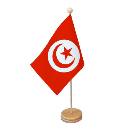 DRAPEAU TUNISIE PM AVEC SOCLE EN BOIS